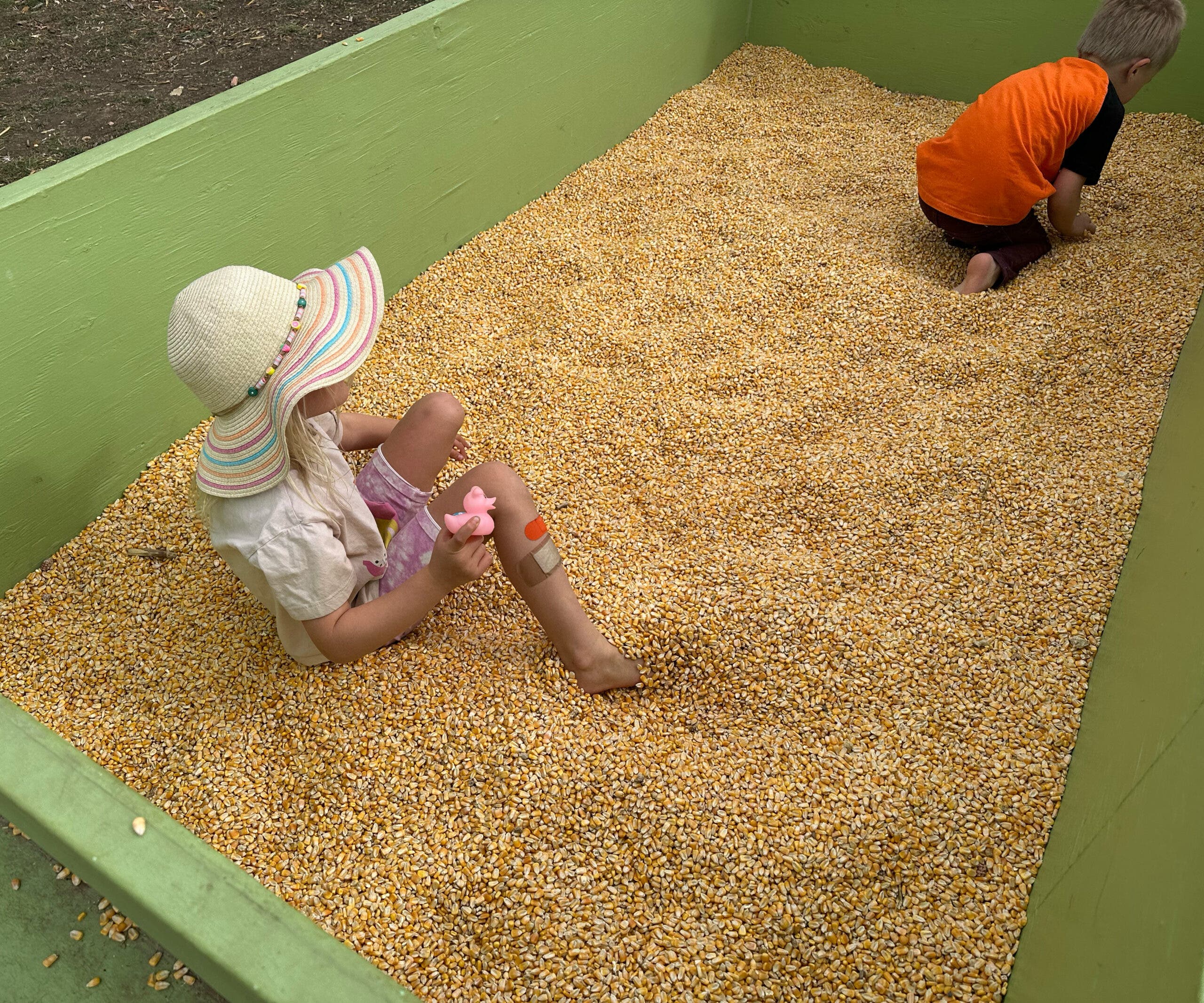 Oh cool, a livestock feeding tank filled to the brim with corn kernels. Dive in everyone—what could go wrong? Oh god, it’s so deep! I’m sinking! Where did my daughter go? There you are—wait, you’re not my child. Aha! Nope, that’s someone’s shoe. Who’s crying? Are you my kid? You are! Fabulous. Let’s never go in there again.