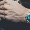Swiss-made but all surfin’ USA with its ocean-blue face, Oakley’s 12 Gauge has a super-strong case made of corrosion-resistant 316L stainless steel, plus alarm, stopwatch, and a smooth rotating bezel for a second time zone. The band is made of the same grippy “Unobtainium” rubber found on the nose and temples of Oakley sunglasses. $1,195;
